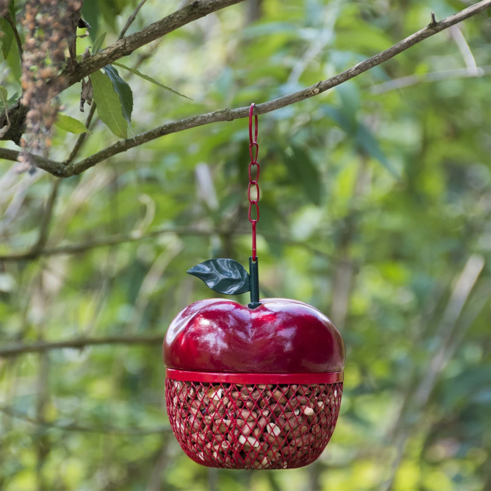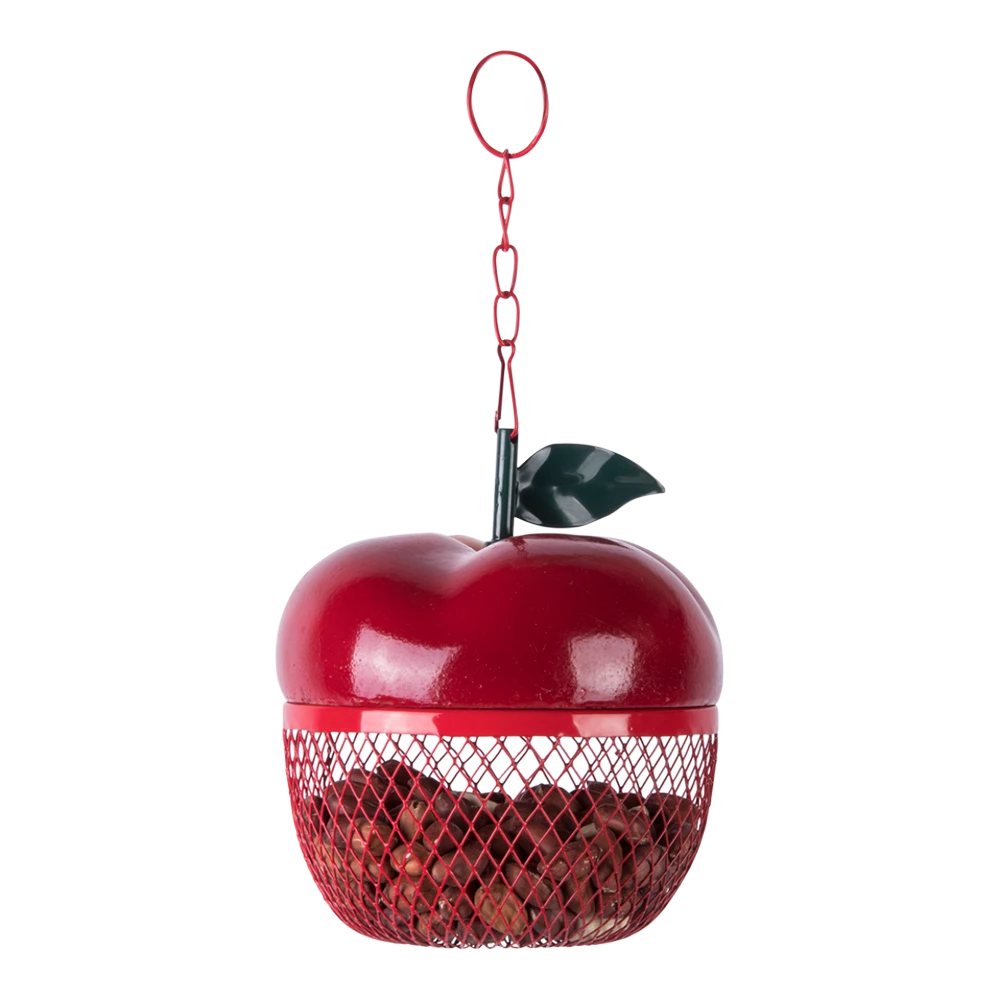 Deze appelvoederhanger kan worden gevuld met pinda’s of noten en is voorzien van een ophangoog. De bovenkant kan worden opgetild voor het eenvoudig (na)vullen.