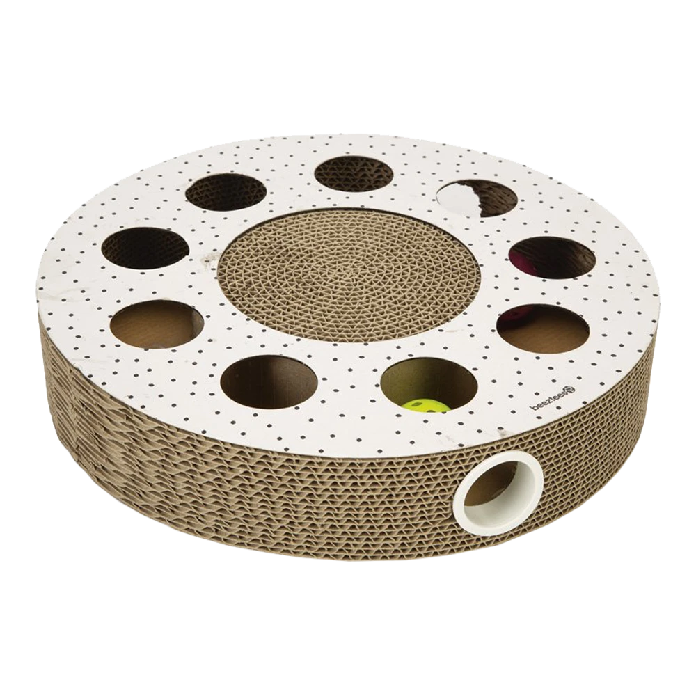 Het Beeztees Hide krabspeelgoed is het ideale speeltje om jouw kat te vermaken. Enerzijds kan Hide worden gebruikt om lekker te krabben. De zijkant en de cirkel in het midden zijn namelijk gemaakt van krabkarton. Daarnaast kan het spelletje ook worden gebruikt om het balletje te pakken te krijgen. Jouw kat zal namelijk met veel plezier het balletje proberen te pakken door zijn poten in de gaten te doen.