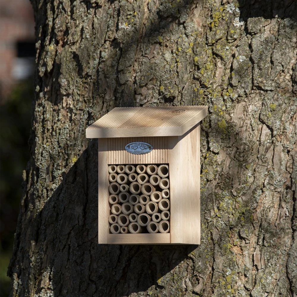 Vele wilde bijensoorten worden bedreigd door de achteruitgang in flora en nestgelegenheden. Dit bijenhuis is voorzien van bamboe rietjes met verschillende diameters waardoor diverse soorten wilde bijen hier kunnen nestelen. Een vrouwtjesbij maakt in een bamboe rietje verschillende cellen met een eitje en wat pollen en nectar voor de larve.