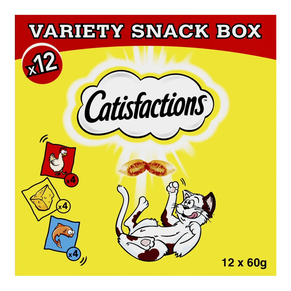 Catisfactions Megabox is een box met 3 smaken Catisfactions. Catisfactions zijn heerlijke krokante kattensnacks met smakelijk zachte vulling. Door de waanzinnige smaaksensatie zijn Catisfactions onweerstaanbaar voor iedere kat. De snack kan op ieder moment van de dag gegeven worden.