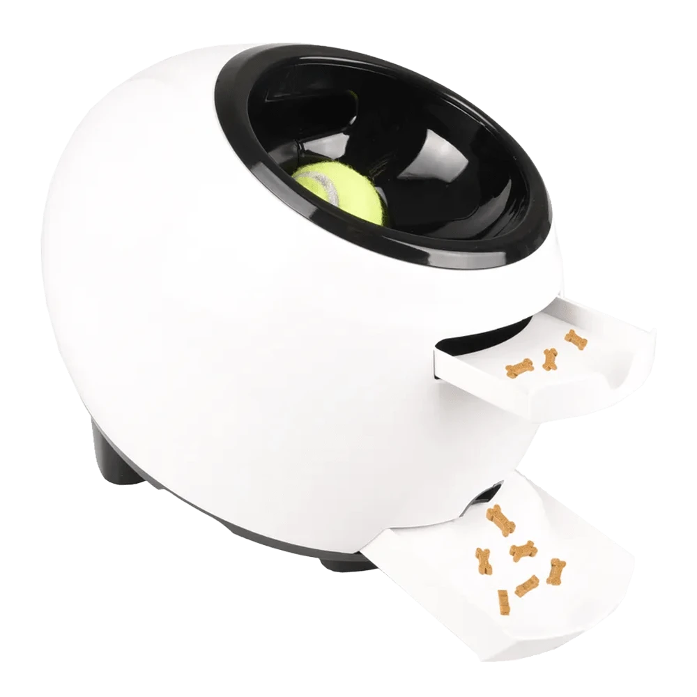 Zoek je hondenspeelgoed voor je hond die tennisballen weg schiet? Dan is deze interactieve tennisballen schieter het perfecte hondenspeeltje. De tennisballen worden weggeschoten, zodat je hond de bal kan halen. Vervolgens dient je hond de tennisbal terug in het apparaat te stoppen en wordt hij beloond met snacks van maximaal 10mm doorsnede. Dit hondenspeeltje zorgt voor uren lang speelplezier bij je hond. Bij de tennisballen schieter worden automatisch tennisballen meegeleverd.