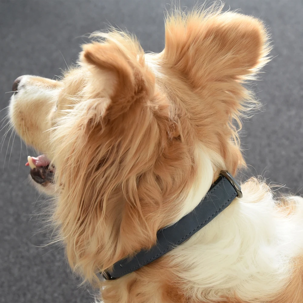 Flamingo Halsband Delu Blauw – Leer – 29-35cm 15mm – Hondenhalsband