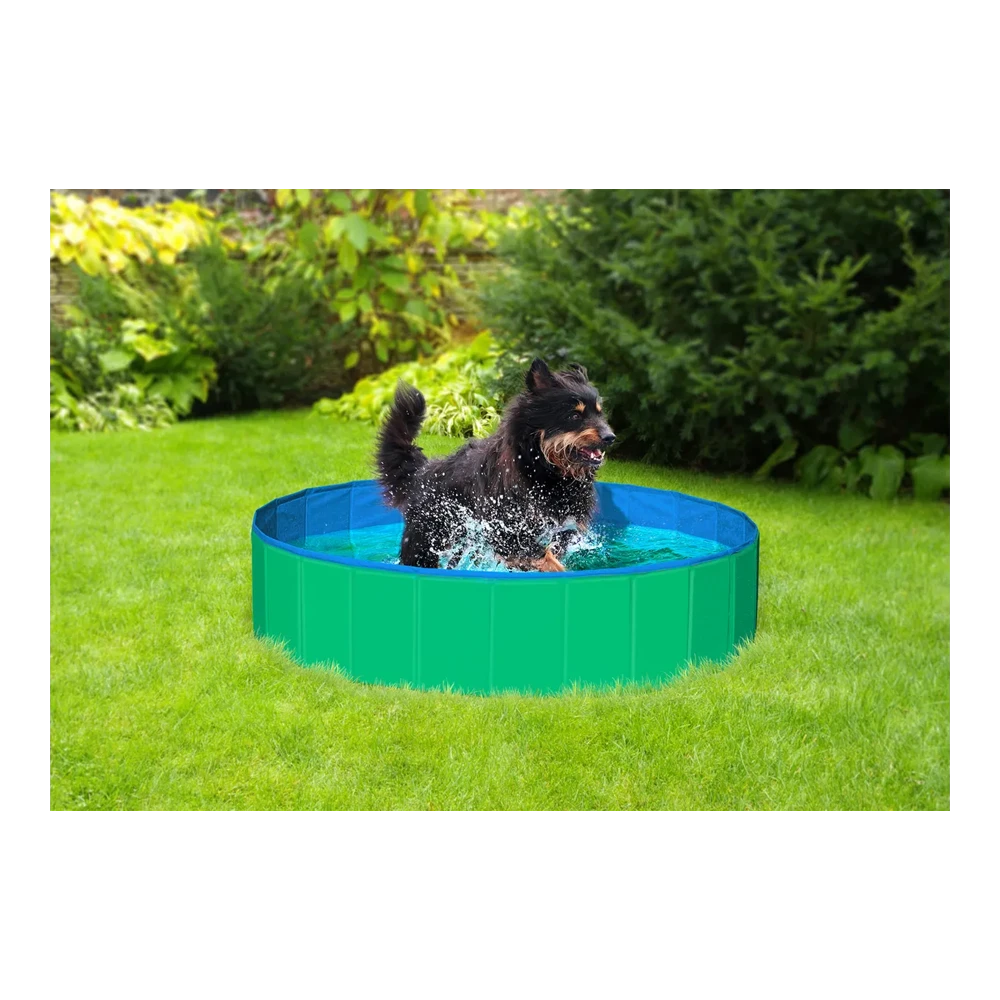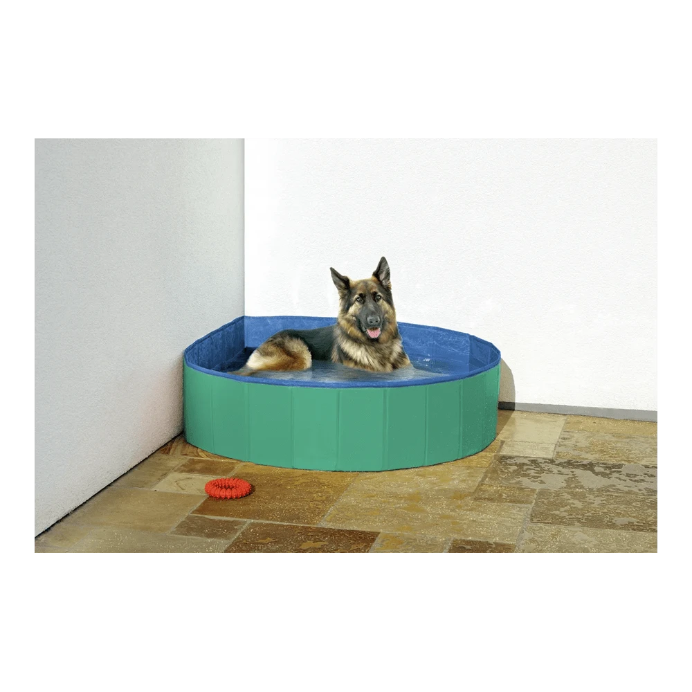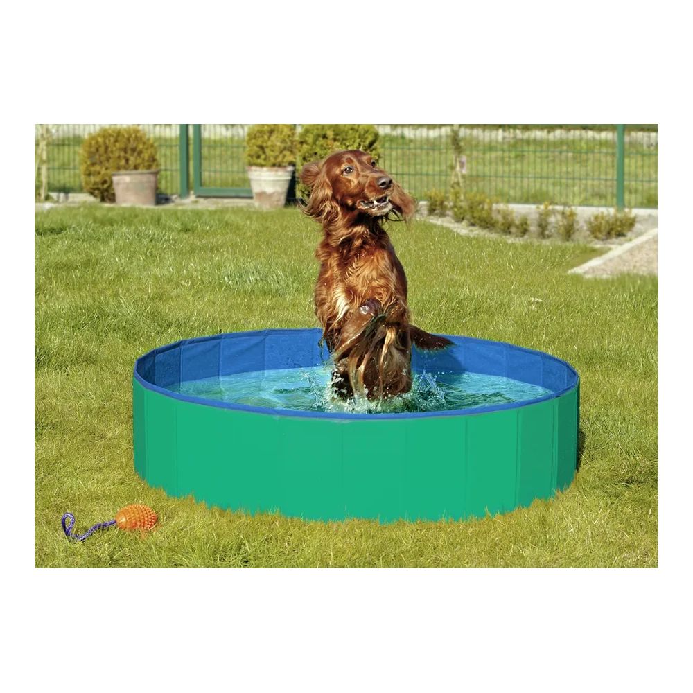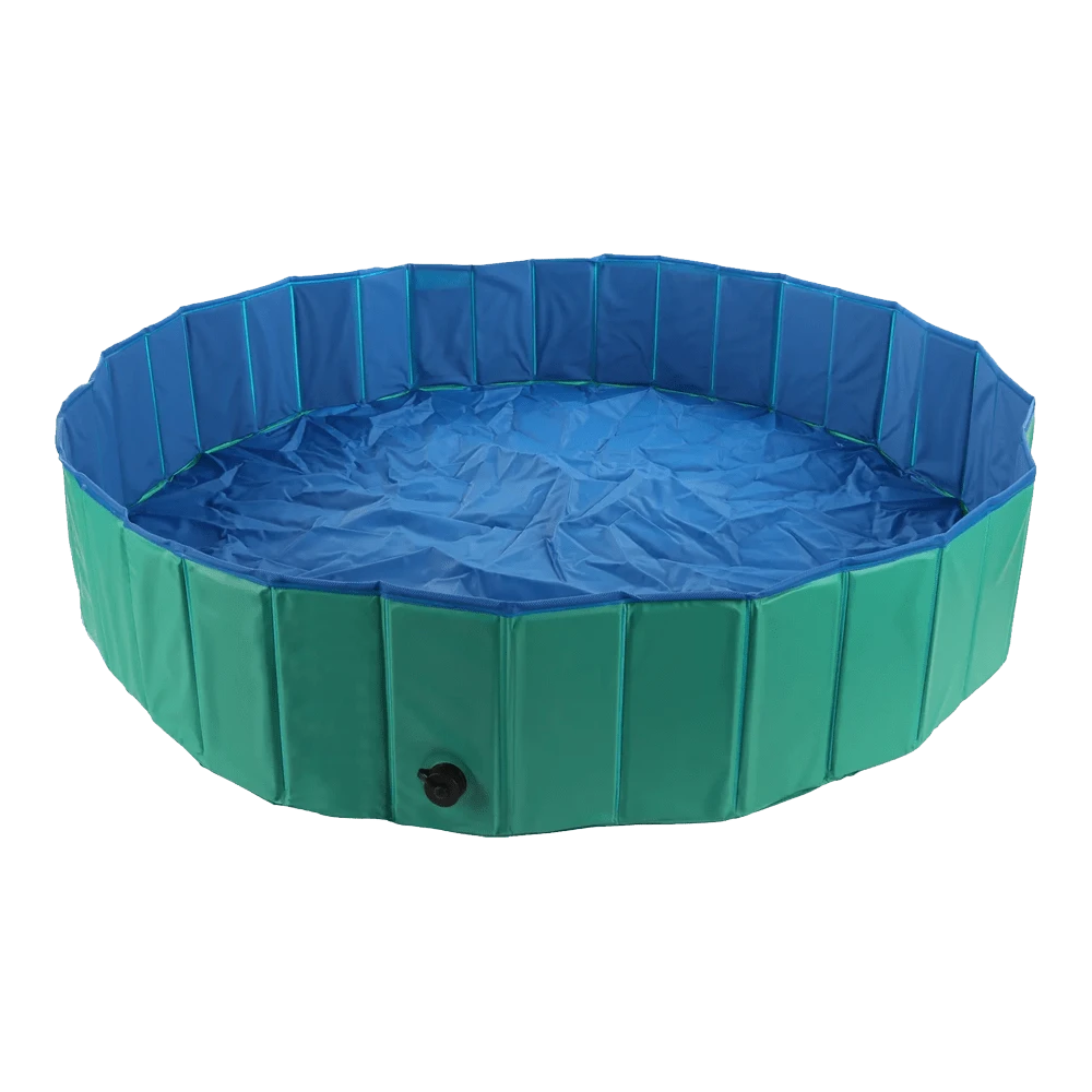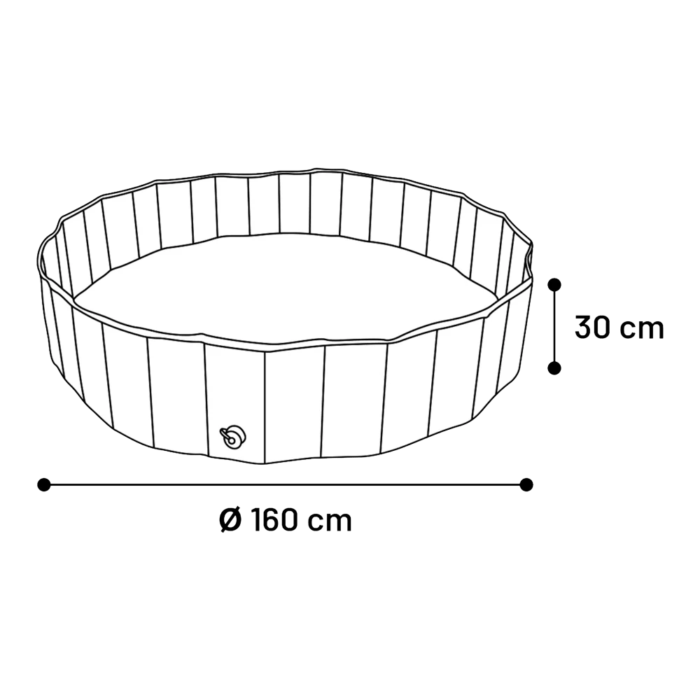 Dit hondenzwembadje biedt verkoeling aan uw hond. Het is makkelijk op te stellen, geen luchtpomp nodig. Met afsluitbare dop. Na gebruik kan je het makkelijk weer terug opvouwen om op te bergen.