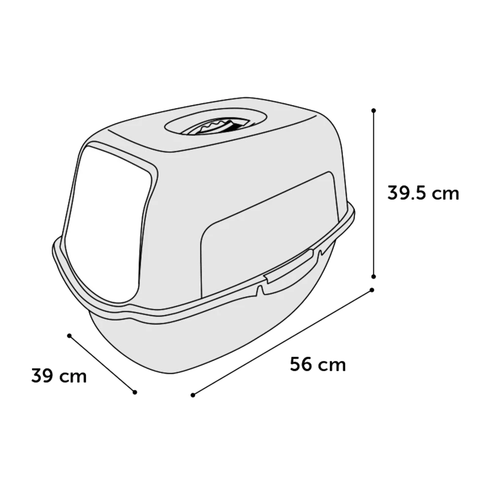 De kattenbak heeft een afmeting van L56xB39XH39,5.