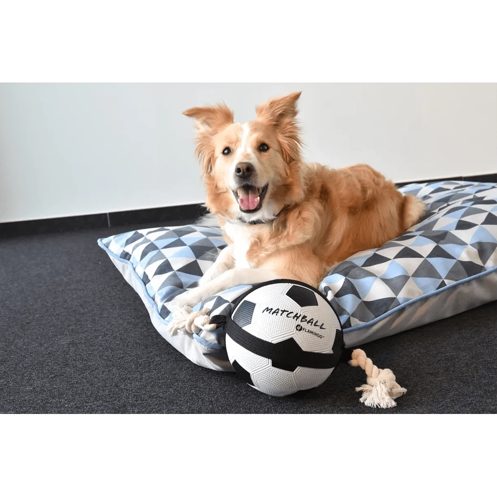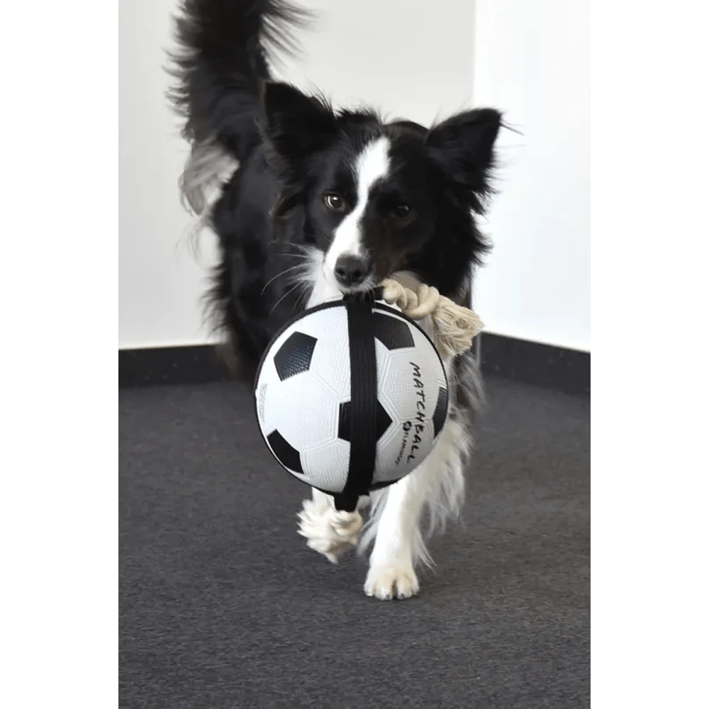 Zoek je leuk hondenspeelgoed voor je hond? Met deze matchball voetbal met touw kan je hond lekker spelen. Door de knopen kun je het touw goed vasthouden en de bal zorgt ervoor dat de hond ook uitdaging heeft om de bal te vangen tijdens het stuiteren. Dit touw zorgt voor uren lang speelplezier bij je hond.