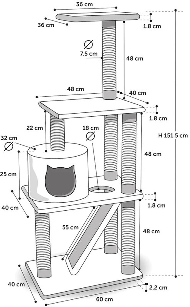 Flamingo Scratching Tree Forza – Grey – 60x40x151,5cm