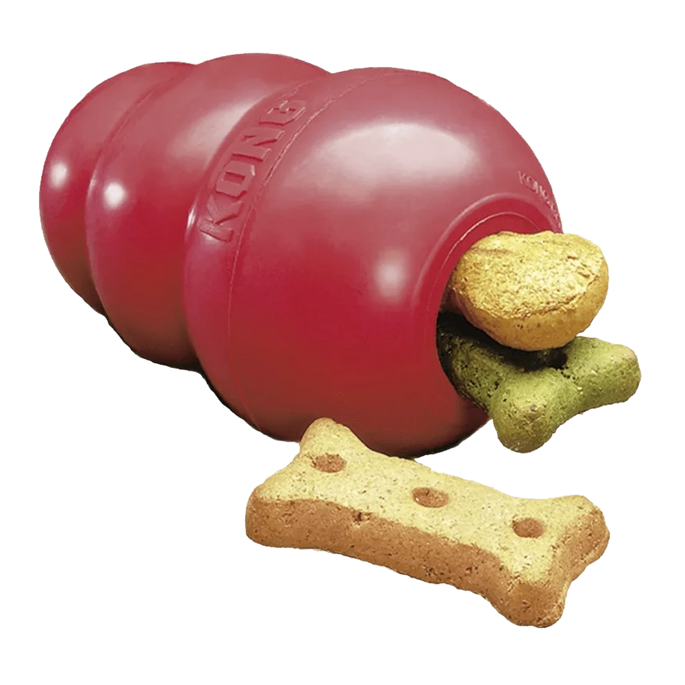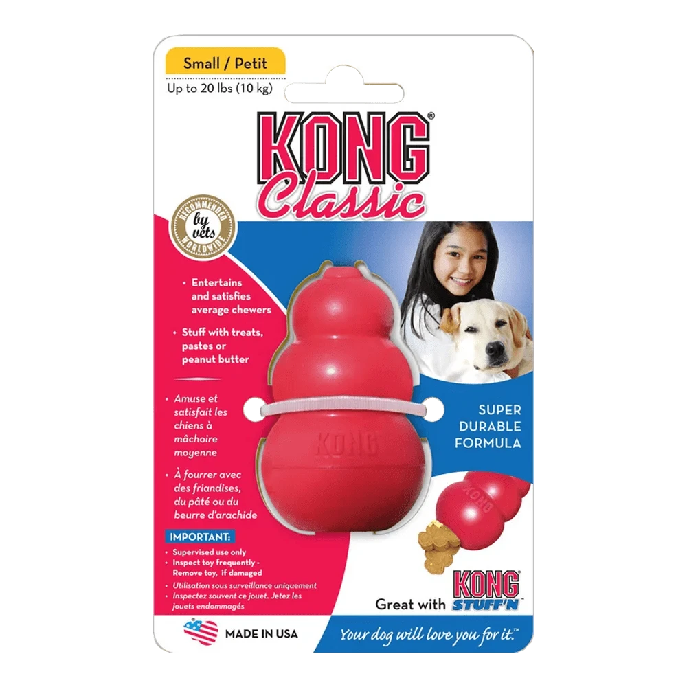 Ben je opzoek naar een kauwspeeltje voor je hond? Het KONG hondenspeeltje is het originele speeltje om je hond te laten kauwen en te belonen. De KONG is gemaakt van een exclusieve rubberen formule voor het doorkomen van het gebit. Er wordt aangeraden aan om de KONG vol te stoppen met brokjes of koekjes voor het bevorderen van correct kauwgedrag en het stimuleren om te werken voor een beloning.