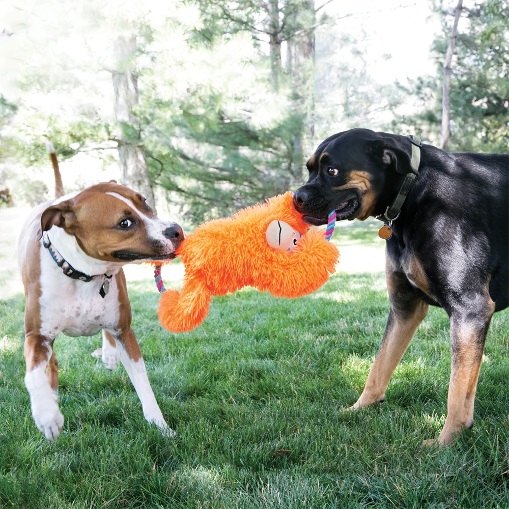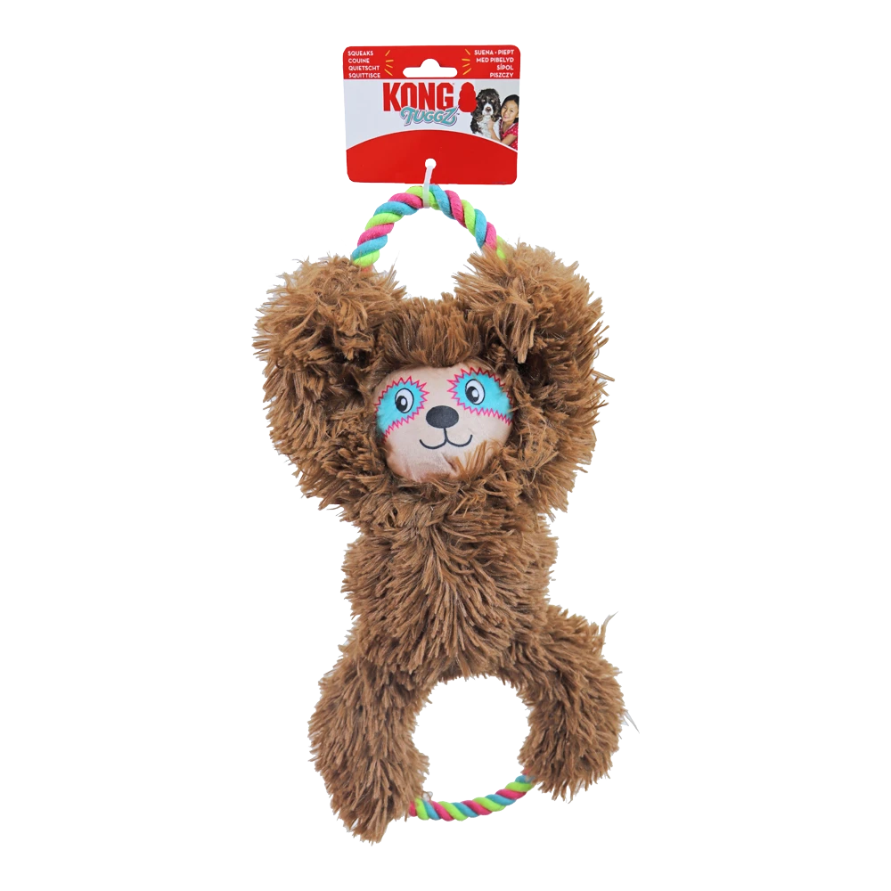 De KONG Tuggz Sloth (luiaard) XL-formaat voor extra lange trek- en gooisessies. Het lange lijf en de touwuiteinden zijn ideaal om te schudden en te slingeren terwijl het voldoet aan de natuurlijke kauwbehoeften van een hond. Met een pluche lijf, dubbele piepers en knisperende armen ontlokt het de instincten om te spelen en te schudden. Het knuffelzachte pluche maakt deze maatjes onweerstaanbaar knuffelig en zijn het ideale vriendje om binnenshuis mee te spelen.