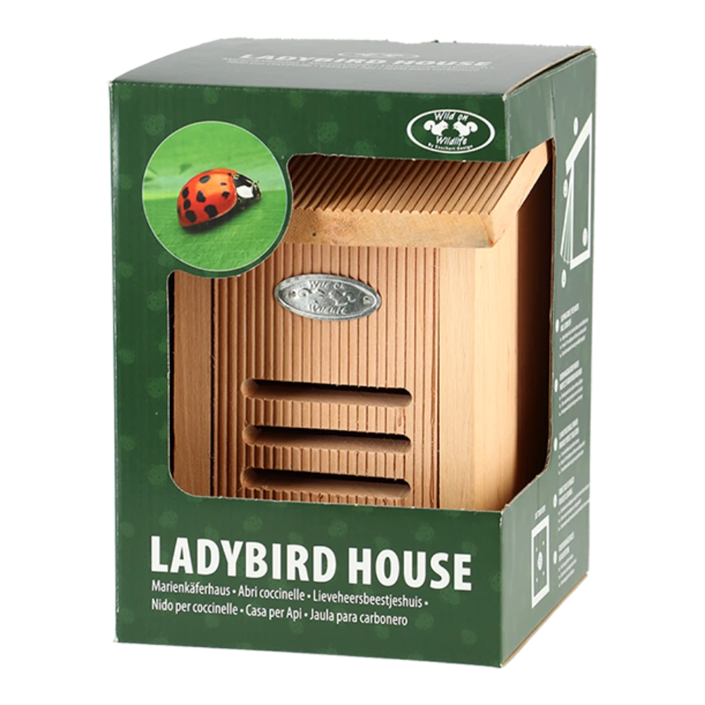 is om het hen naar de zin te maken in je tuin. Dit huisje biedt onderdak en beschutting. Het huisje is zo ontworpen dat lieveheersbeestjes hier gemakkelijk toegang tot hebben en worden concurrenten en roofdiertjes buiten gehouden. Lieveheersbeestjes overwinteren vaak in een groep bij elkaar. Om het lieveheersbeestjes helemaal naar de zin te maken, kunnen losse bladeren of een rolletje golfkarton in het huisje worden gestopt. Ook kunnen ingevroren larven van het lieveheersbeestje in het huisje worden geplaatst voor de biologische bestrijding van bladluizen.