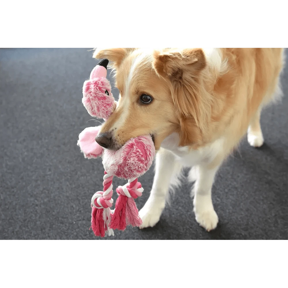 Zoek je leuk hondenspeelgoed voor je hond? Met deze roze Flamingo hondenknuffel gemaakt van pluche kan je hond lekker spelen. Het is een leuk en zacht speeltje en heeft aan de onderkant touw, zodat je hond samen met je hond kan spelen. Dit hondenspeeltje zorgt voor uren lang speelplezier bij je hond.