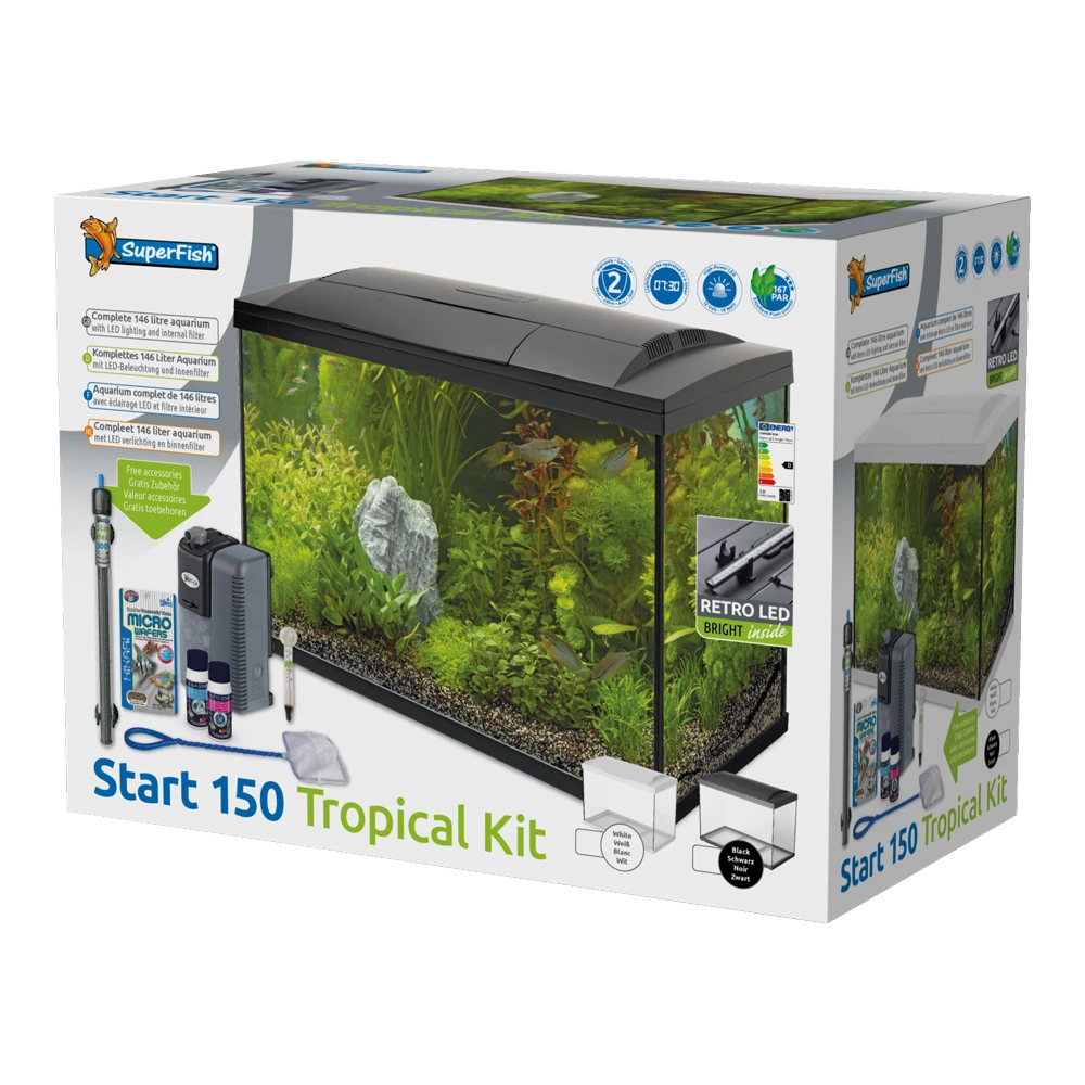 SuperFish Start zijn voordelige complete starterkits met energie zuinige LED-verlichting, binnenfilter en handige accessoires om de aquarium hobby te starten. Verkrijgbaar in zes maten van 20 tot 150 liter, als goudvis- of tropisch aquarium, waarbij deze laatste worden geleverd met een aquarium verwarmer!