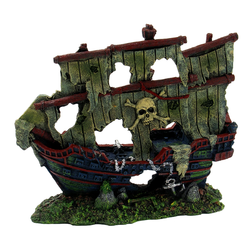 Aquariumdecoraties in de vorm van wrakken van priratenschepen. Het scheepswrak XXL is maar liefst 70 cm breed en 56 cm hoog. Het magneet scheepswrak lijkt uit het aquarium te varen, waardoor het er spookachtig uitziet.