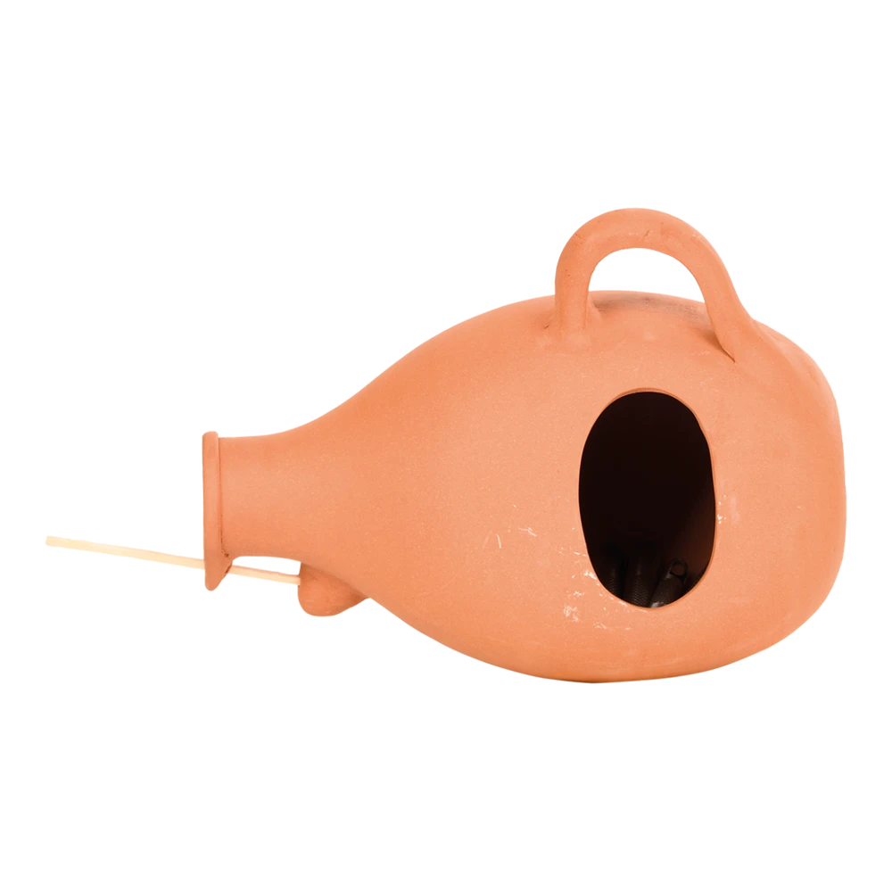 Al sinds de 16de eeuw worden vogelpotten gebruikt. Deze vogelpot is gebaseerd op een model uit de 17de eeuw. Net als tegenwoordig vonden mensen het toen al prettig om vogels om zich heen te hebben, en ze bezig te zien met hun jongen. Deze handvervaardigde pot heeft een authentieke uitstraling en is op traditionele en ambachtelijk wijze gemaakt. De grondvorm is een bolle vaas, die dankzij de platte open achterkant aan de muur opgehangen kan worden. Deze pot biedt Mezen en Mussen een goede plek om in te nesten en om populaties van deze vogelsoorten te behouden of weer terug te krijgen in een gebied. In de winter bewijst de vogelpot vaak een goede dienst voor de vogels om te schuilen tegen het slechte weer. Een juiste plaats om de vogelpot op te hangen is een rustige en enigszins beschutte plaats, dus niet pal in de zon of op de regenzijde, met een vrije aanvliegroute voor de vogel. Het najaar is de beste tijd om de pot schoon te maken.