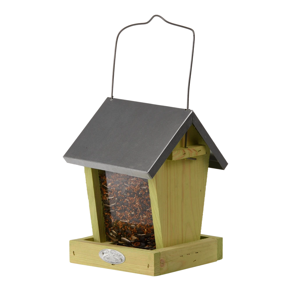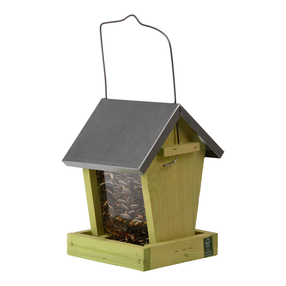 Zaadsilo voor het voeren van vogels in de tuin. Te bevestigen aan de boom of muur.